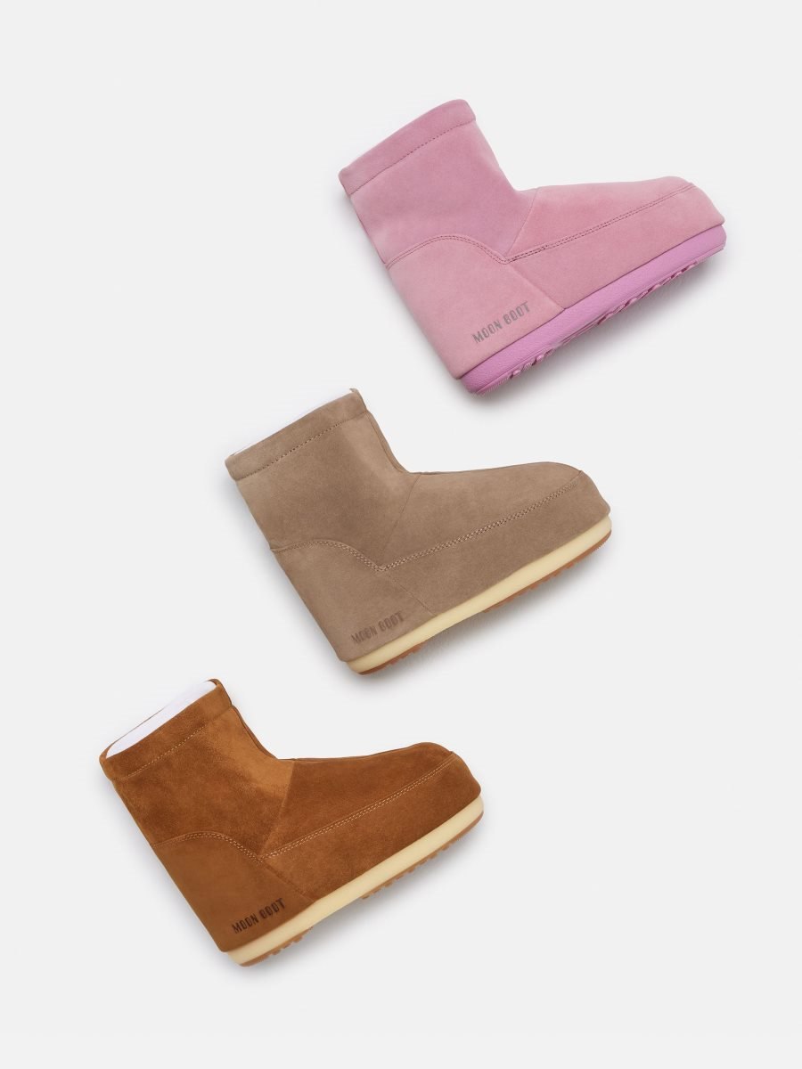 Moon Boot's Icon travels to a minimalist dimension with this low-top version: it's laceless and sports ultra-subtle branding in the form of a debossed logo at the heel. The inimitable silhouette is reworked in specially developed suede which has been treated to prevent stains. It’s insulated and features suction pads on the rubber tread sole that offer serious ground control.